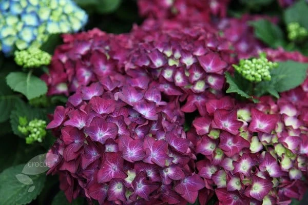 Recently introduced, this deciduous shrub intially produces pink flowerheads that mature to an unusually dark pinkish red in mid- to late summer, when grown on soils with a neutral pH. Compact and bushy, it is well suited to pots and containers and the flower-heads make excellent additions to dried flower arrangements.