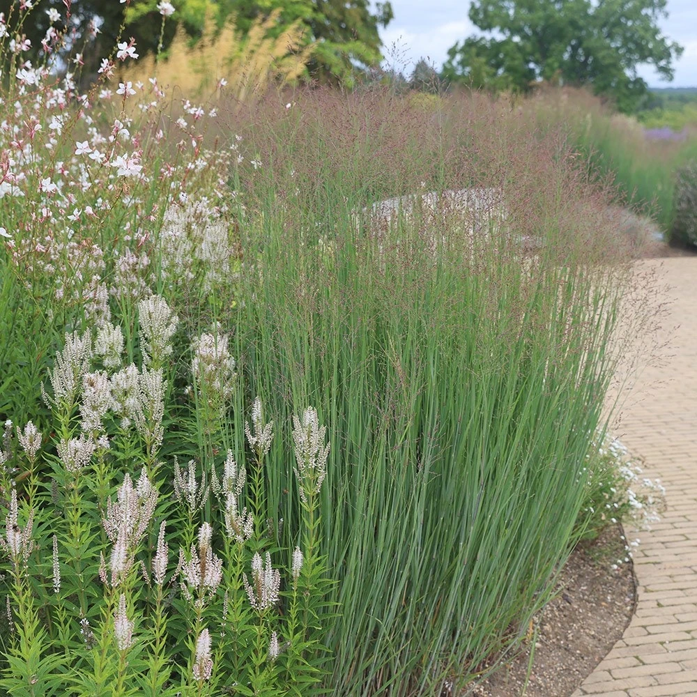 This deciduous ornamental fountain-like grass is renowned for its steely coloured blue-grey to blue-purple leaves, which form stiff, upright clumps that turn yellow in autumn. The pink flowers, which appear in late summer and early autumn, add an airy elegance. ‘Heavy Metal’ is one of our recommended plants, because it’s perfect for providing vertical interest in a sunny, new perennial border.