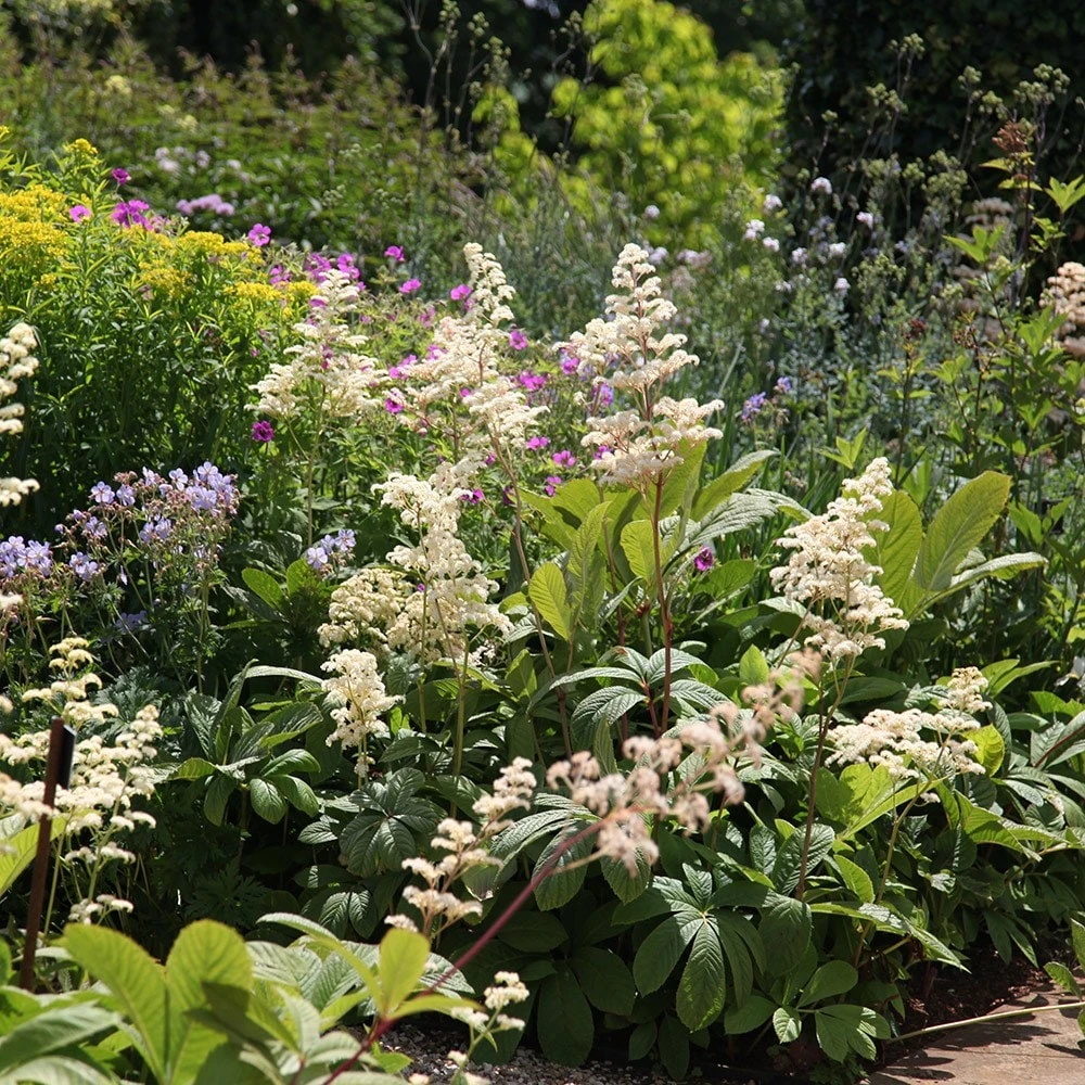 Towering spikes of star-shaped, white or pink flowers on large panicles up to 60cm long in midsummer. This striking, clump-forming perennial with its horse chestnut-like leaves looks great planted in the moist margins of a stream or pond. Best grown in a sheltered, shady spot where it contrasts well with the lacy texture of ferns.